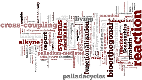 Our research programs aim to develop and apply new chemical tools and principles to solve biomedical problems that are difficult to solve, if not impossible, using standard biological techniques alone. A central theme of our research is to harness the power of organic reactivity to study protein dynamics, function, and assembly in living systems as well as design protein-based therapeutics. We are currently working on the following two research areas: