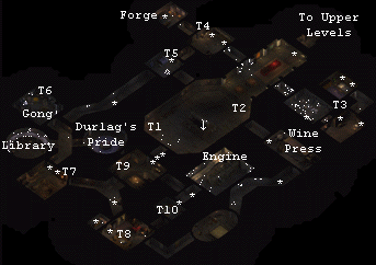 | Area - map: The first person you meet is acts as a store for things you find in the tower. You can leave the tower and sell them to him. Remember the nearly impossible to kill Daemon guards from the Thieves Undercellar? There are two here as well. | |||||||||