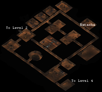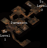 This floor is infested with hobgoblins, so rest before entering if you're running low on health or spells. The stairs to the fourth level (and Daveorn) are in the southeast corner of the level. |